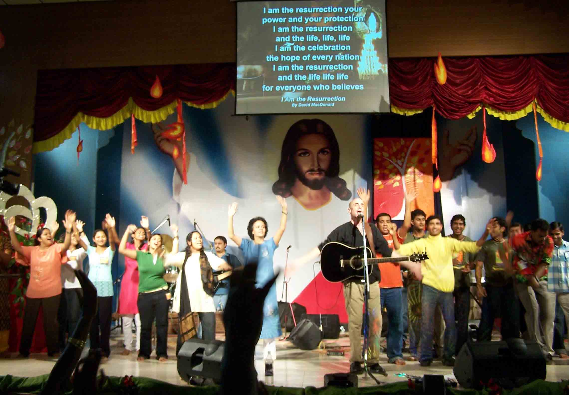 founder of Canada's 100 Huntley Street. David and his band is singing.